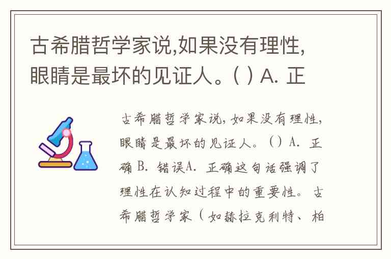 古希腊哲学家说,如果没有理性,眼睛是最坏的见证人。( ) A. 正确 B. 错误