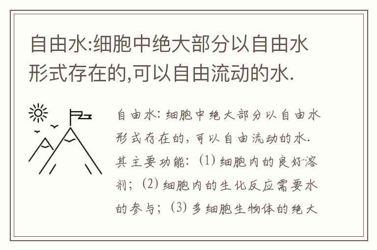 关于自由水的功能:溶剂、参与生化反应、浸润细胞环境、运输物质。