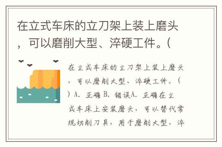 在立式车床的立刀架上装上磨头,可以磨削大型、淬硬工件。( ) A. 正确 B. 错误
