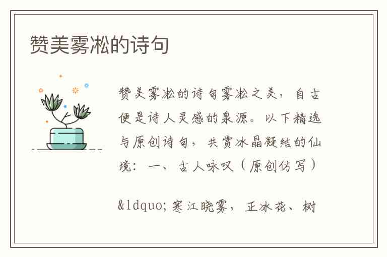 赞美雾凇的诗句
