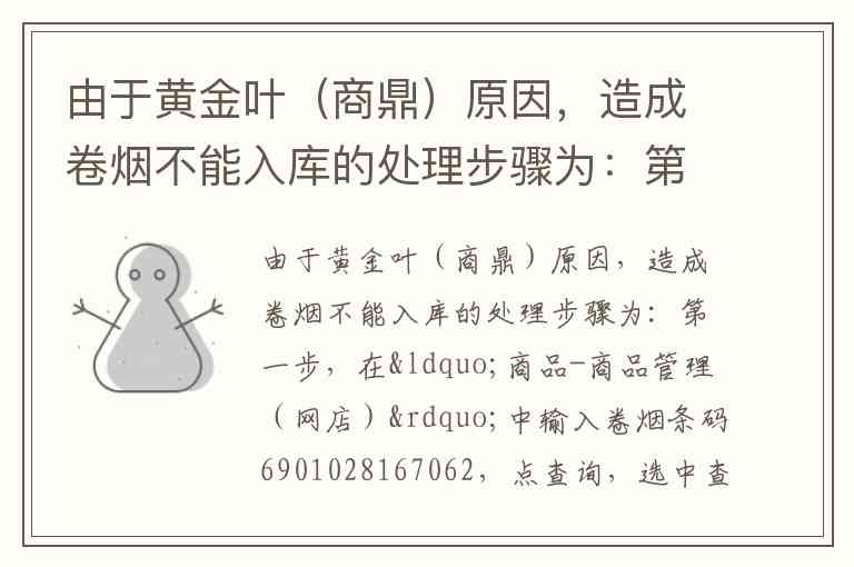 根据您描述的流程,处理黄金叶(商鼎)卷烟因信息问题无法入库的情况,步骤如下: