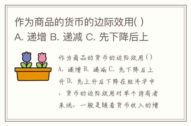 作为商品的货币的边际效用( ) A. 递增 B. 递减 C. 先下降后上升 D. 先上升后下降