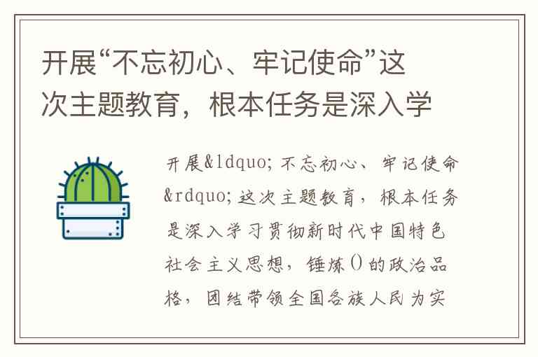 开展“不忘初心、牢记使命”这次主题教育,根本任务是深入学习贯彻新时代中国特色社会主义思想,锤炼()的政治品格,团结带领全国各族人民为实现伟大梦想共同奋斗。 A. 为民 B. 忠诚 C. 干净 D. 担当