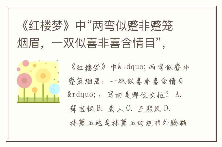 《红楼梦》中“两弯似蹙非蹙笼烟眉,一双似喜非喜含情目”,写的是哪位女性? A. 薛宝钗 B. 袭人 C. 王熙凤 D. 林黛玉