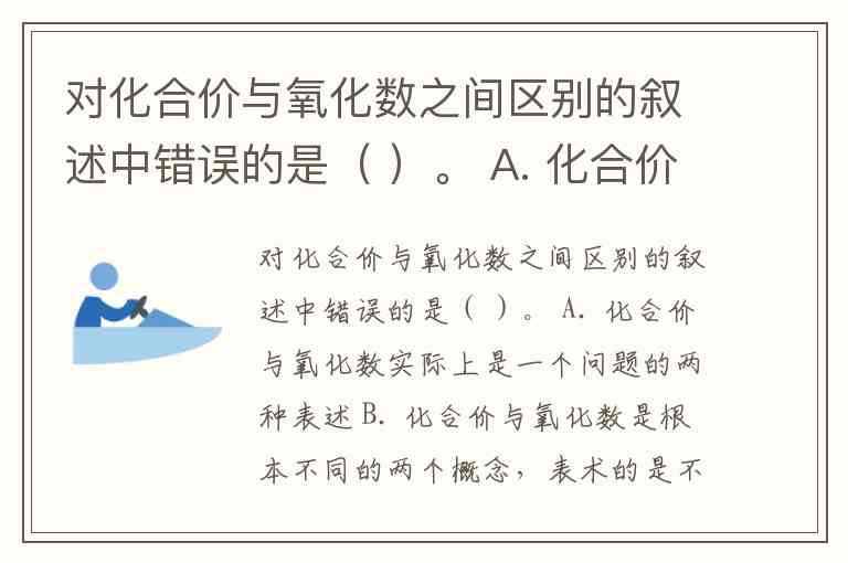 “化合价与氧化数是根本不同的两个概念,表述的是不同的东西”