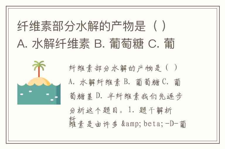 而严格意义上,学术题中可能也接受 A,因为部分水解不能得到纯葡萄糖(排除 B),不能得到“葡萄糖基”这种不明确的东西(排除 C),更不能得到完全不同的半纤维素(排除 D)。