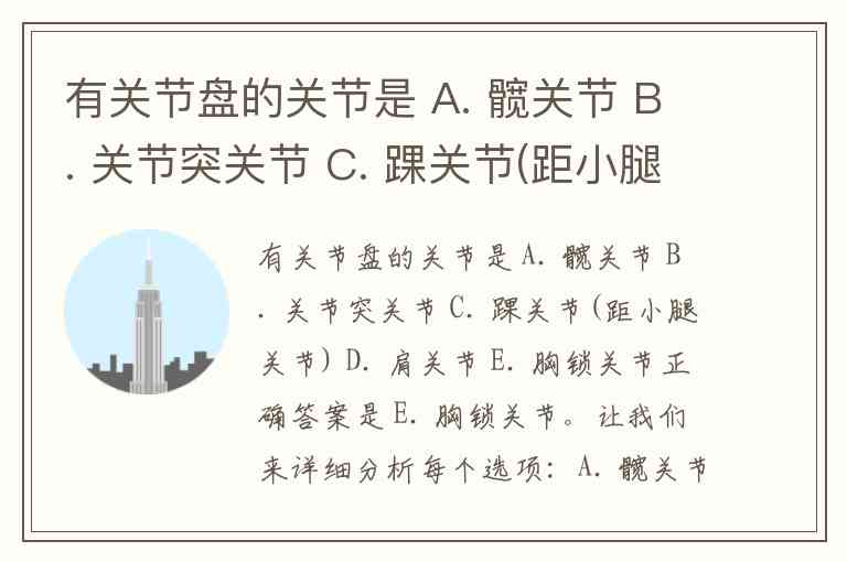 有关节盘的关节是 A. 髋关节 B. 关节突关节 C. 踝关节(距小腿关节) D. 肩关节 E. 胸锁关节