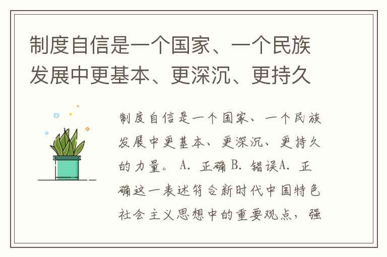 制度自信是一个国家、一个民族发展中更基本、更深沉、更持久的力量。 A. 正确 B. 错误