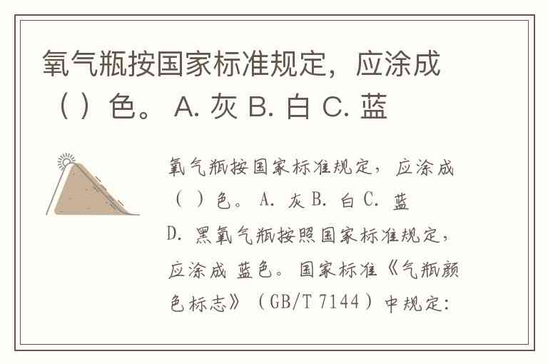 氧气瓶按国家标准规定,应涂成( )色。 A. 灰 B. 白 C. 蓝 D. 黑