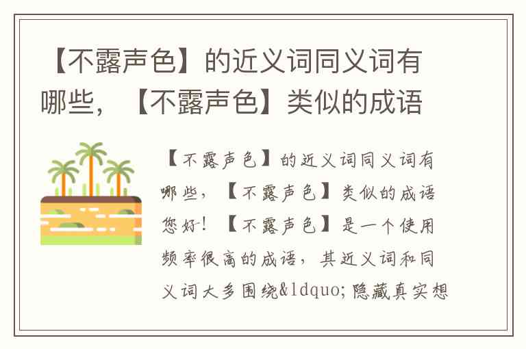 您好!【不露声色】是一个使用频率很高的成语,其近义词和同义词大多围绕“隐藏真实想法或情感”这一核心。