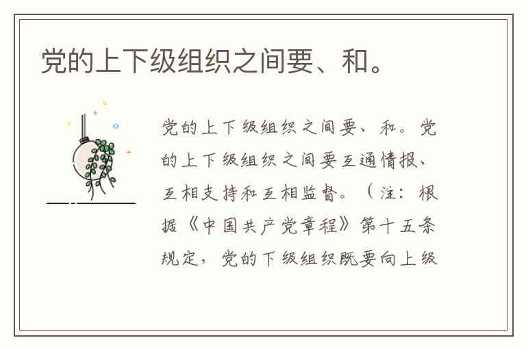 (注:根据《中国共产党章程》第十五条规定,党的下级组织既要向上级组织请示和报告工作,又要独立负责地解决自己职责范围内的问题;上下级组织之间要互通情报、互相支持和互相监督。这是党的民主集中制原则的具体体现。)