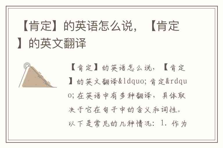 “肯定”在英语中有多种翻译,具体取决于它在句子中的含义和词性。以下是常见的几种情况: