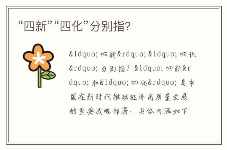 “四新”和“四化”是中国在新时代推动经济高质量发展的重要战略部署,具体内涵如下: