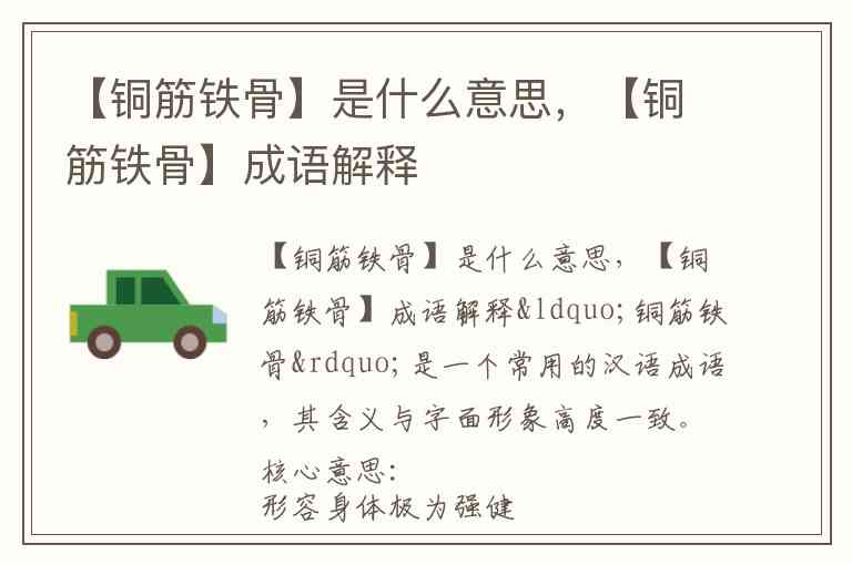 “铜筋铁骨”是一个常用的汉语成语,其含义与字面形象高度一致。