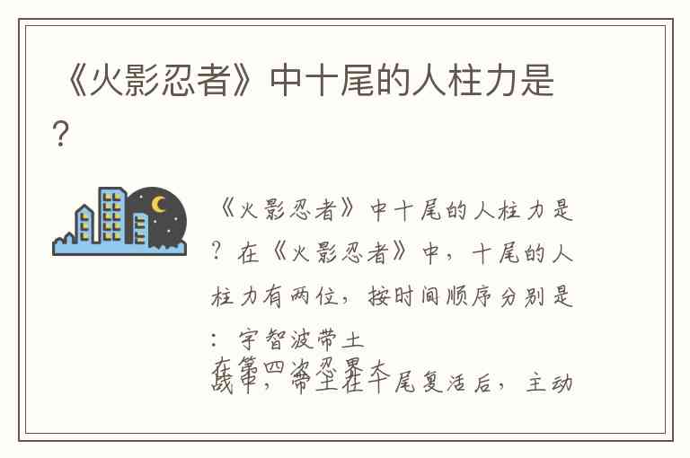 在《火影忍者》中,十尾的人柱力有两位,按时间顺序分别是: