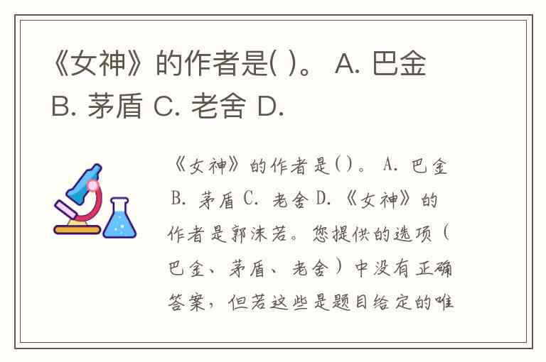 《女神》的作者是( )。 A. 巴金 B. 茅盾 C. 老舍 D.