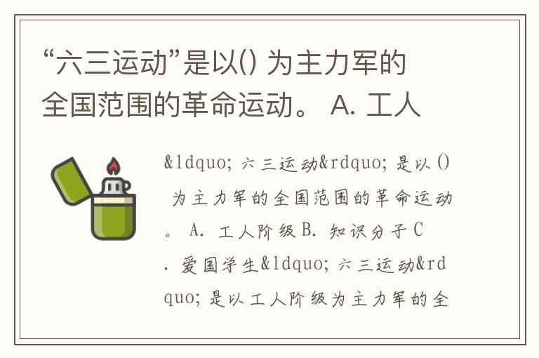 “六三运动”是以() 为主力军的全国范围的革命运动。 A. 工人阶级 B. 知识分子 C. 爱国学生