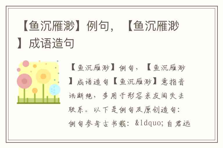 【鱼沉雁渺】意指音讯断绝,多用于形容亲友间失去联系。以下是例句及原创造句: