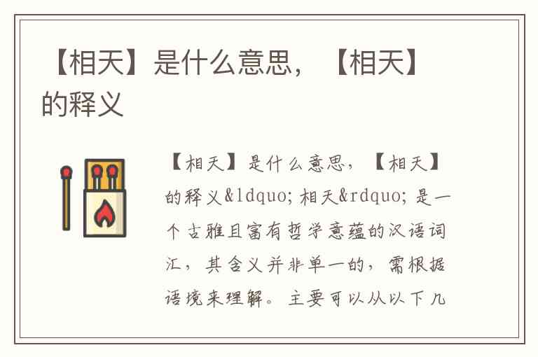 在现代汉语中,“相天”一词已不常用,但理解其内涵有助于解读古典文献。