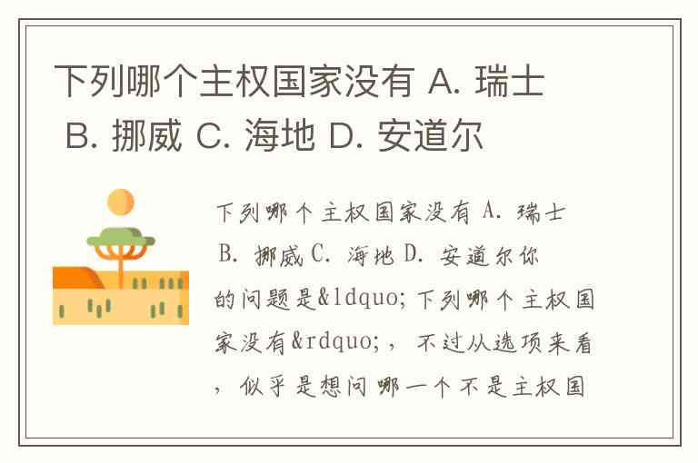 下列哪个主权国家没有 A. 瑞士 B. 挪威 C. 海地 D. 安道尔