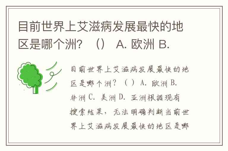 目前世界上艾滋病发展最快的地区是哪个洲?() A. 欧洲 B. 非洲 C. 美洲 D. 亚洲