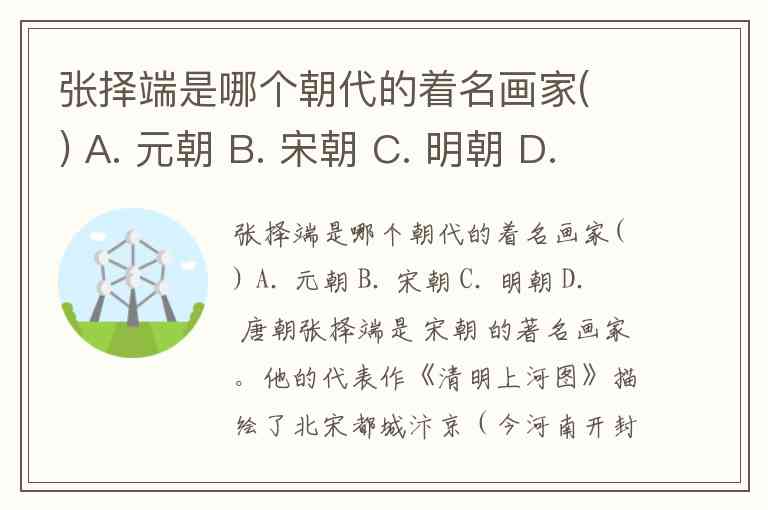 张择端是哪个朝代的着名画家( ) A. 元朝 B. 宋朝 C. 明朝 D. 唐朝