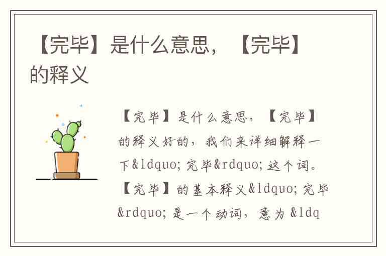 简单来说,当你听到或看到“完毕”时,就可以理解为:“搞定!到此为止!”