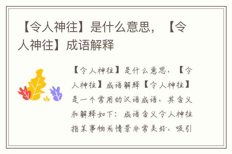 【令人神往】是一个常用的汉语成语,其含义和解释如下: