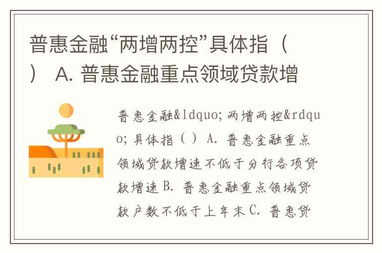 “两增两控”是中国金融监管部门为推动普惠金融发展,对商业银行提出的具体考核要求。