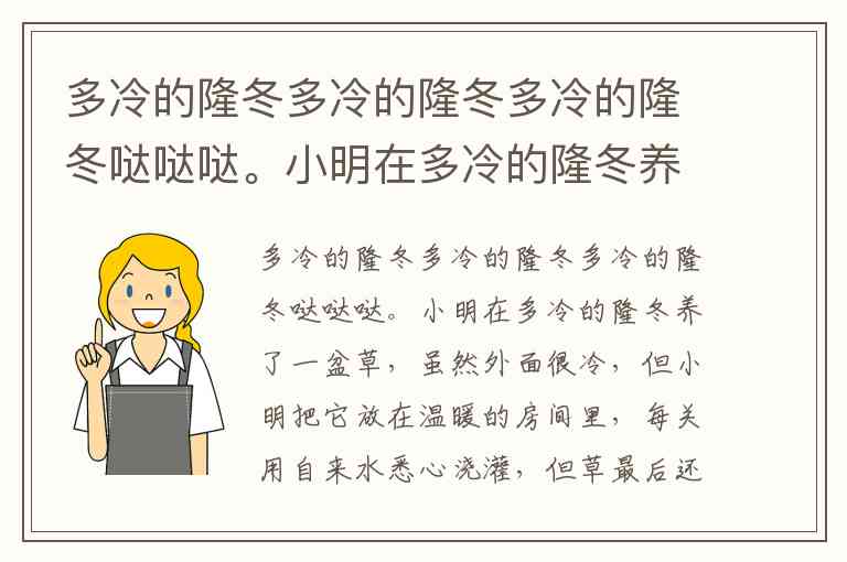 多冷的隆冬多冷的隆冬多冷的隆冬哒哒哒。小明在多冷的隆冬养了一盆草,虽然外面很冷,但小明把它放在温暖的房间里,每关用自来水悉心浇灌,但草最后还是死了,这是为什么呢?() A. 的 B. 冻死的 C. 热死的 D. 淹死的