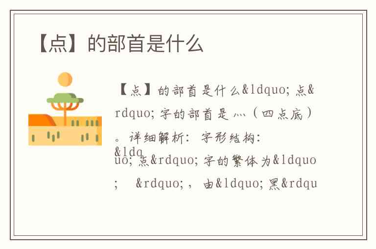 在《新华字典》等现代汉字规范中,“点”的部首归为 “灬”。尽管上半部分的“占”也常见,但按字形结构划分,“灬”是它的规范部首。