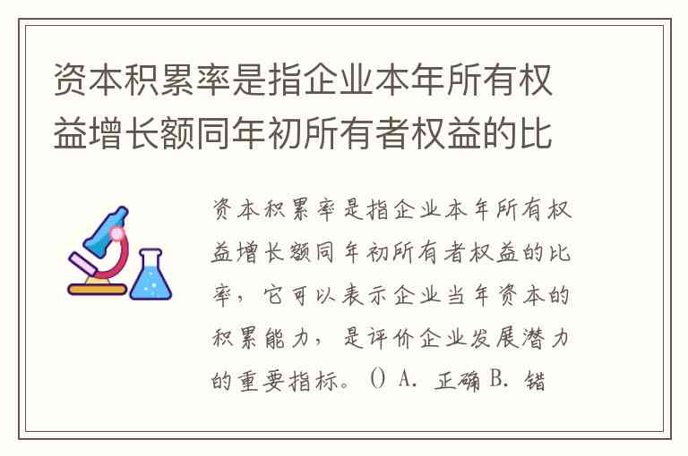 资本积累率是指企业本年所有权益增长额同年初所有者权益的比率,它可以表示企业当年资本的积累能力,是评价企业发展潜力的重要指标。() A. 正确 B. 错误