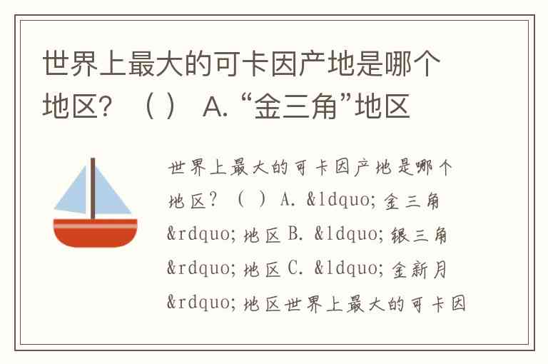 世界上最大的可卡因产地是哪个地区?( ) A. “金三角”地区 B. “银三角”地区 C. “金新月”地区