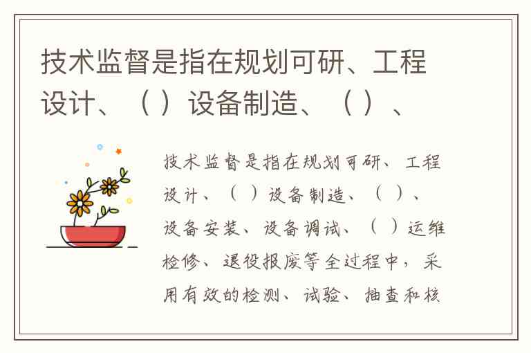 根据题干描述,“技术监督”需要覆盖电力设备的全过程,包括规划、可研、工程设计、设备制造、设备验收、设备安装、设备调试、竣工验收、运维检修、退役报废等阶段。