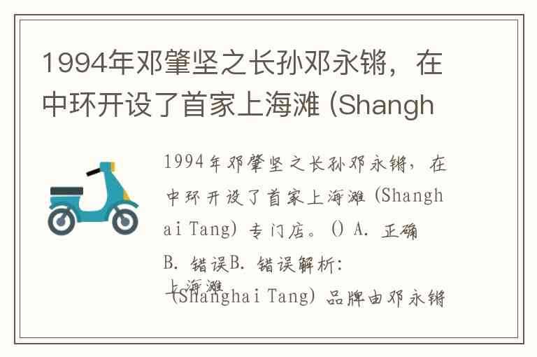 1994年邓肇坚之长孙邓永锵,在中环开设了首家上海滩 (Shanghai Tang) 专门店。() A. 正确 B. 错误