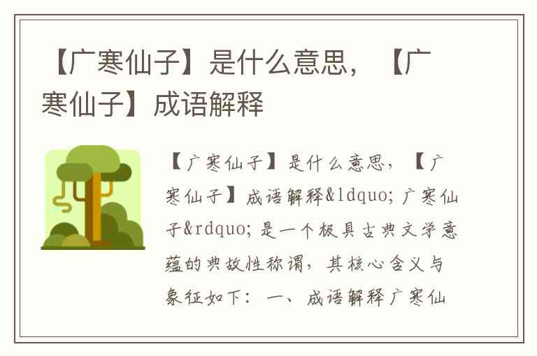 “广寒仙子”是一个极具古典文学意蕴的典故性称谓,其核心含义与象征如下:
