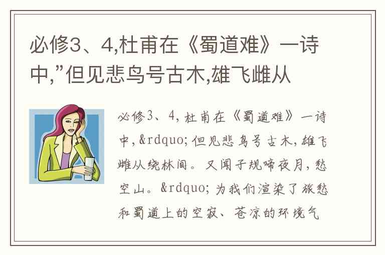 必修3、4,杜甫在《蜀道难》一诗中,”但见悲鸟号古木,雄飞雌从绕林间。又闻子规啼夜月,愁空山。”为我们渲染了旅愁和蜀道上的空寂、苍凉的环境气氛,再一次有了地烘托了“蜀道之难,难于上青天”之情状。 A. 正确 B. 错误