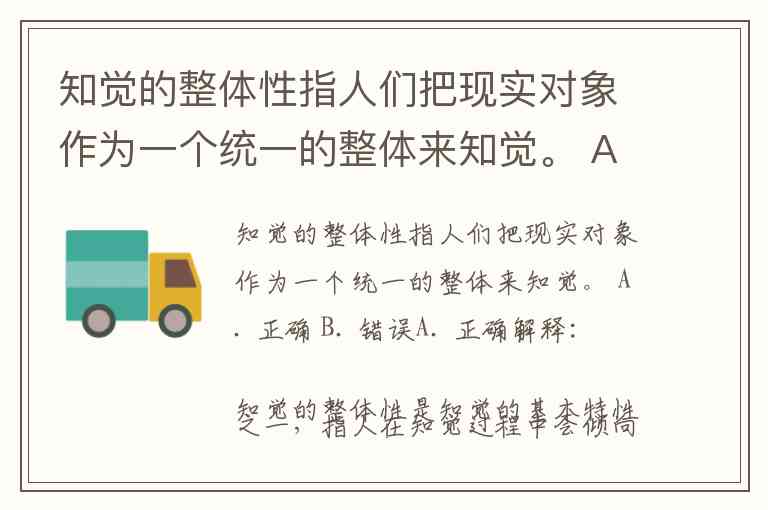 知觉的整体性指人们把现实对象作为一个统一的整体来知觉。 A. 正确 B. 错误