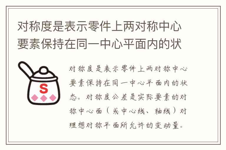 题干第一句说“对称度是表示零件上两对称中心要素保持在同一中心平面内的状态”,这里涉及对称度的定义。对称度在几何公差中用于控制中心要素(如中心平面、轴线)关于基准对称分布的程度。