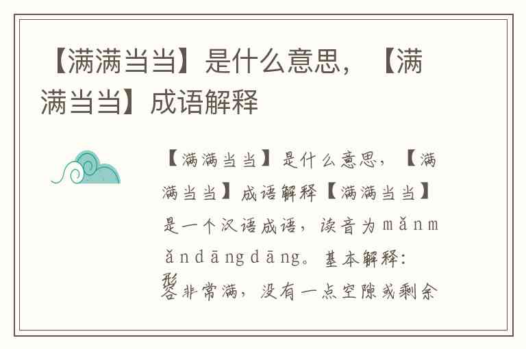 【满满当当】是什么意思,【满满当当】成语解释