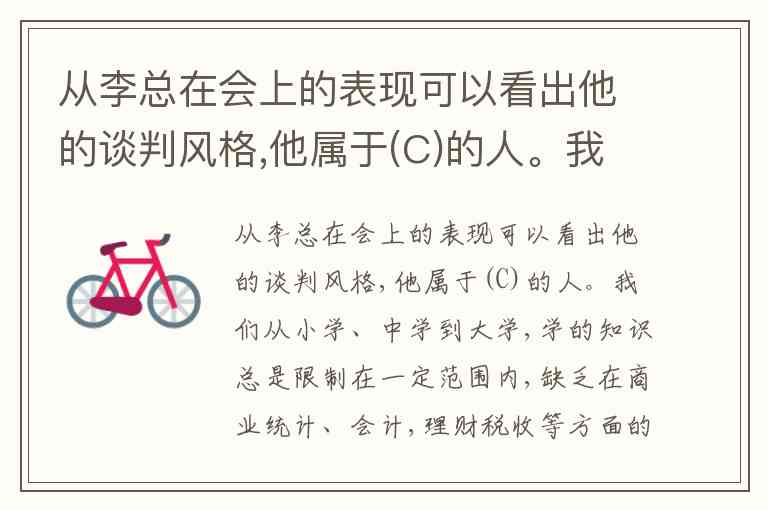 根据题干中“从李总在会上的表现可以看出他的谈判风格,他属于(C)的人”以及选项提示,可以判断李总的谈判风格是 C 专横武断。