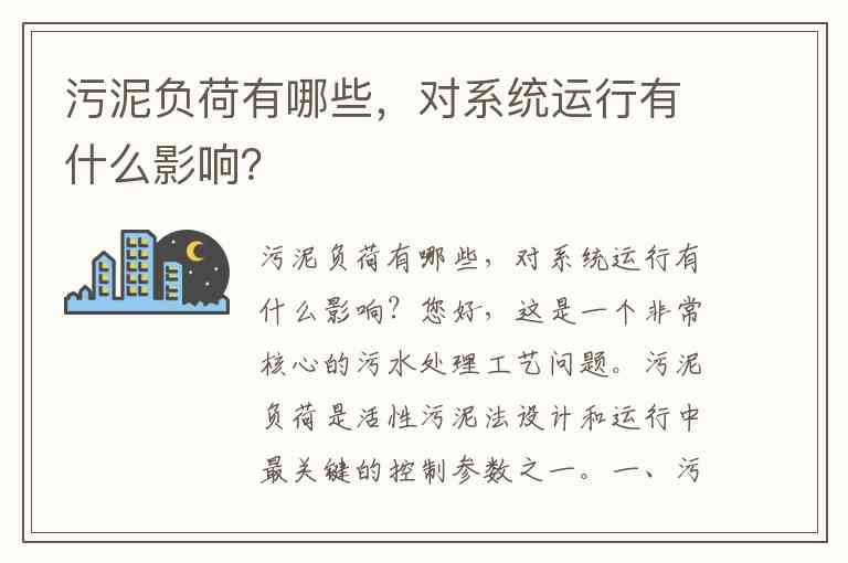 您好,这是一个非常核心的污水处理工艺问题。污泥负荷是活性污泥法设计和运行中最关键的控制参数之一。