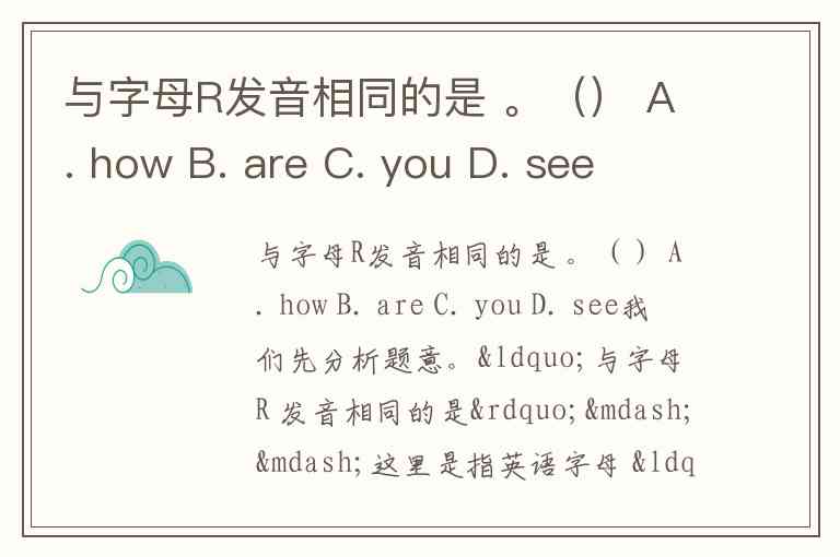 “与字母 R 发音相同的是”——这里是指英语字母 “R” 的读音(国际音标通常为 /ɑːr/ 或 /ɑr/,即 ar 组合的一种读音)。