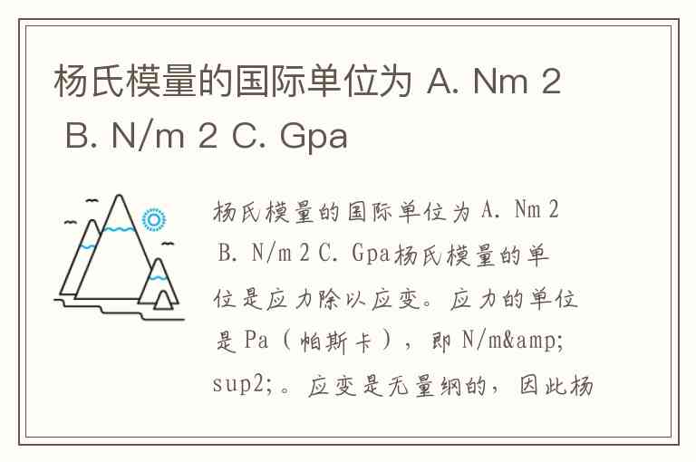 C. GPa:这其实是杨氏模量常用的量级单位(10⁹ Pa),也是国际单位制允许的单位,但题目问的是“国际单位”,通常指的是基本导出单位 N/m²(Pa)。