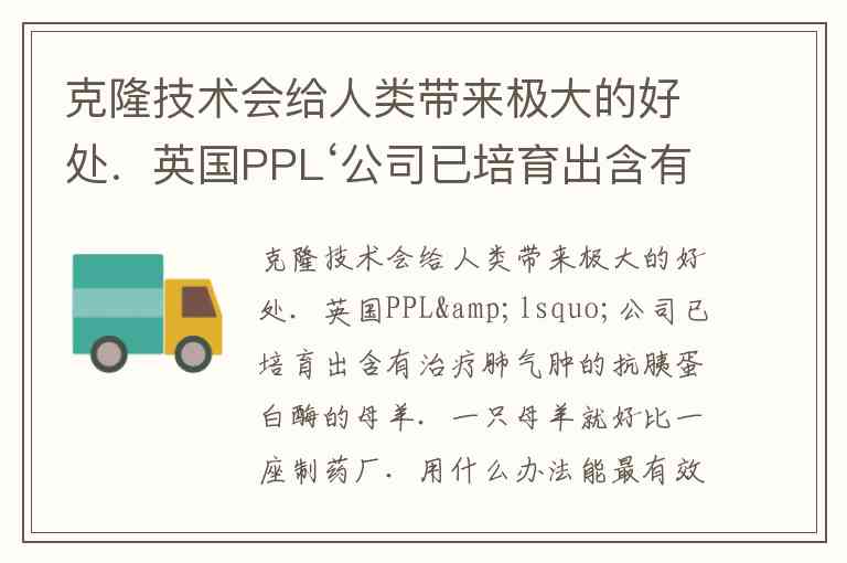 繁殖含抗胰蛋白酶的母羊,像制药厂一样生产药物;