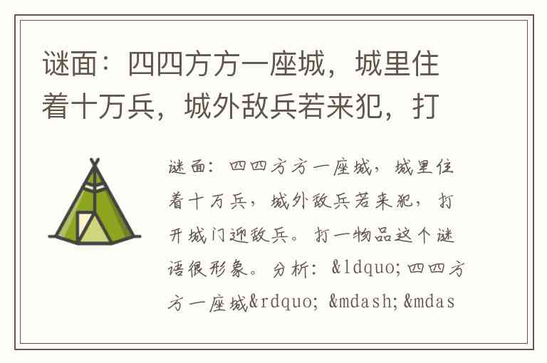 谜面:四四方方一座城,城里住着十万兵,城外敌兵若来犯,打开城门迎敌兵。打一物品