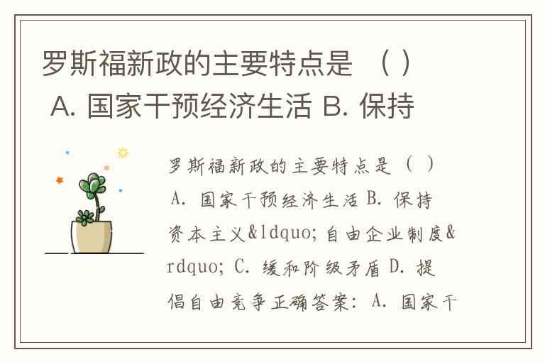 罗斯福新政的主要特点是 ( ) A. 国家干预经济生活 B. 保持资本主义“自由企业制度” C. 缓和阶级矛盾 D. 提倡自由竞争