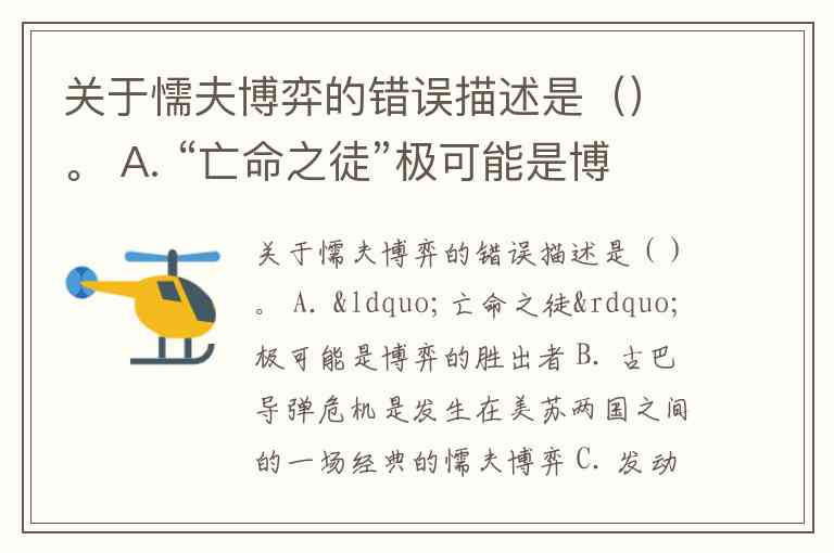 关于懦夫博弈的错误描述是()。 A. “亡命之徒”极可能是博弈的胜出者 B. 古巴导弹危机是发生在美苏两国之间的一场经典的懦夫博弈 C. 发动懦夫博弈的一方往往是竞争中的强者 D. 在懦夫博弈中,决定胜负的关键策略是,逐渐增加不可控风险,但比策略更重要的因素是成本