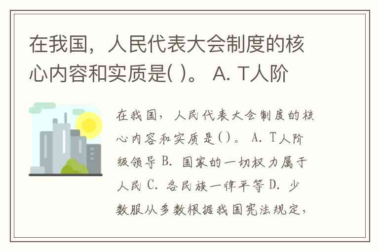 在我国,人民代表大会制度的核心内容和实质是( )。 A. T人阶级领导 B. 国家的一切权力属于人民 C. 各民族一律平等 D. 少数服从多数