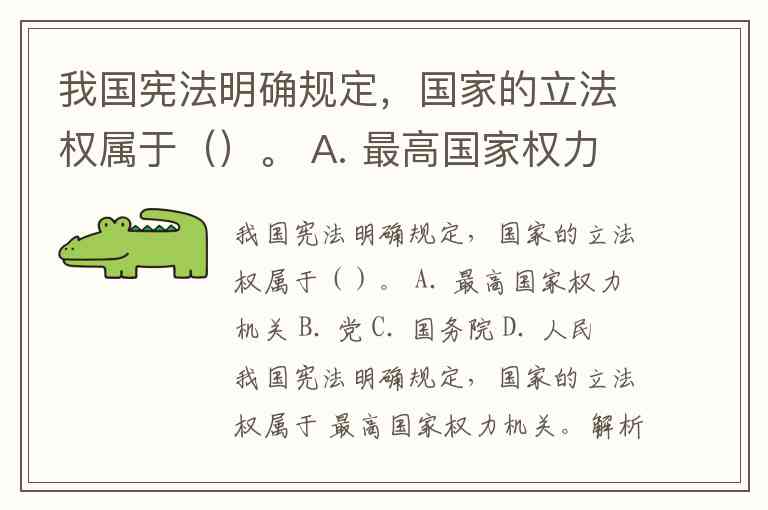 我国宪法明确规定,国家的立法权属于()。 A. 最高国家权力机关 B. 党 C. 国务院 D. 人民